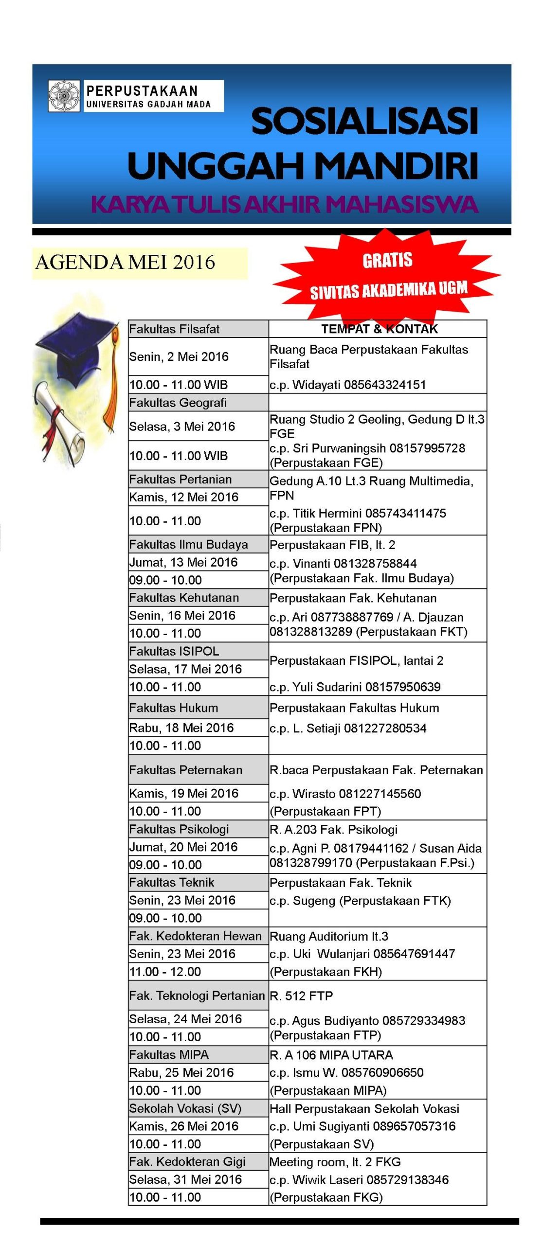 Perpustakaan Universitas Gadjah Mada bekerjasama dengan PT. Gamatechno dan SpringerNature akan mengadakan Mini Workshop dalam rangka UGM EXPO 2016. Mini Workshop akan dilaksanakan pada: