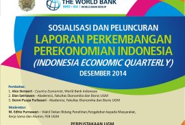 Perpustakaan UGM akan menyelenggarakan Sosialisasi dan Peluncuran Laporan Perkembangan Perekonomian Indonesia (Indonesia Economic Quarterly), pada:
