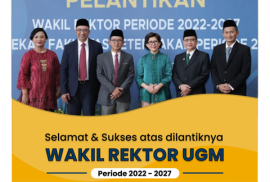 Perpustakaan UGM mengucapkan selamat dan sukses atas dilantiknya Wakil Rektor baru untuk masa bakti 2022-2027, Jumat (29/7), di Balai Senat, Gedung Pusat UGM.