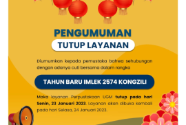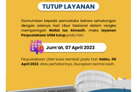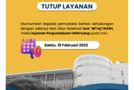 Diumumkan kepada seluruh Pemustaka bahwa mulai tanggal 13 Februari 2023, jam buka layanan Perpustakaan UGM adalah sebagai berikut: