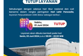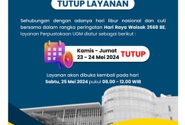 Sehubungan dengan adanya Hari Libur Nasional dalam rangka peringatan Kenaikan Yesus Kristus, layanan Perpustakaan UGM diatur sebagai berikut: