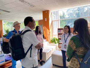 The team toured several flagship learning spaces, including the WOW Room (Window of the World), the TGCL Room (The Gade Creative Lounge), which supports studies in law and global governance, and the Podcast Room, a creative digital literacy hub for students. These facilities illustrate how UGM is evolving its library into an active and participatory learning environment that extends beyond traditional functions.