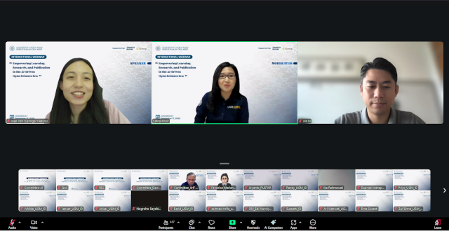 Held virtually via Zoom, the event brought together experts from various countries. The webinar served as an important platform to discuss opportunities, challenges, and ethical principles in utilizing AI for the open dissemination of knowledge. Participants from China, Taiwan, Malaysia, Singapore, the Philippines, and Indonesia also joined, reflecting global enthusiasm for the integration of AI and Open Science.