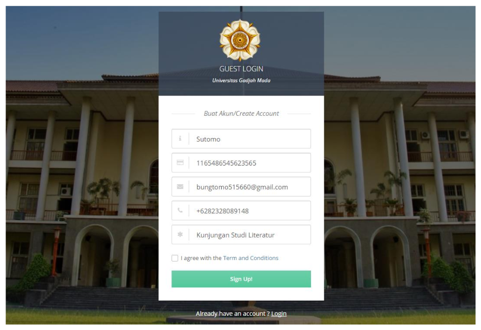 Fill in your data such as Full Name, ID Number, Valid Email and Telephone Number that will be used to log in to Guest Internet.