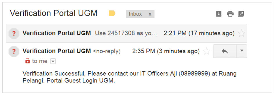 When the following page appears, it means that Guest Account registration has been successful. Please wait for confirmation from the IT staff.