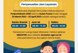 Diumumkan kepada seluruh Pemustaka bahwa mulai tanggal 13 Februari 2023, jam buka layanan Perpustakaan UGM adalah sebagai berikut: